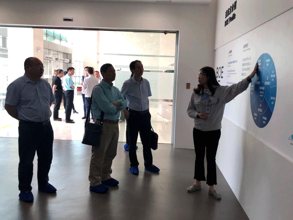 在企业相关负责人的带领下,学院一行参观了厂区生活区、企业的生产车间,实地了解TFT-LCD技术和由玻璃到液晶面板的生产过程,还参观了京东方集团展厅,了解了京东方TFT-LCD、AMOLED、微显示和传感器等方向的最新科技产品。企业相关人员介绍了福州京东发光电科技有限公司的机构设置、制造中心、生产流程及未来的发展等情况。