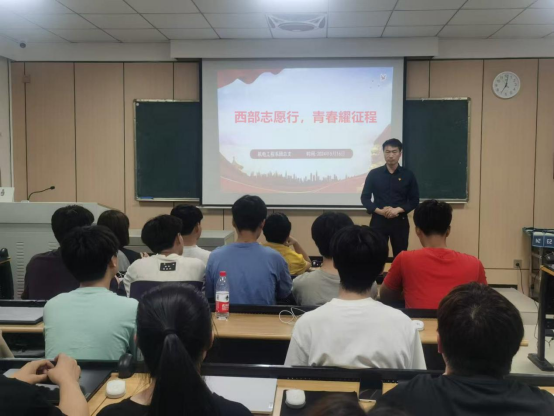 为深入贯彻落实国家关于西部计划的决策部署,引导和鼓励更多青年学子投身西部建设,机电工程系团总支于5月16日在明德楼B203教室开展了 “西部志愿行,青春耀征程” 宣讲课。此次宣讲课由机电工程系党支部书记担任主讲,主要面向机电工程系2023级各团支部的青年团员学生。